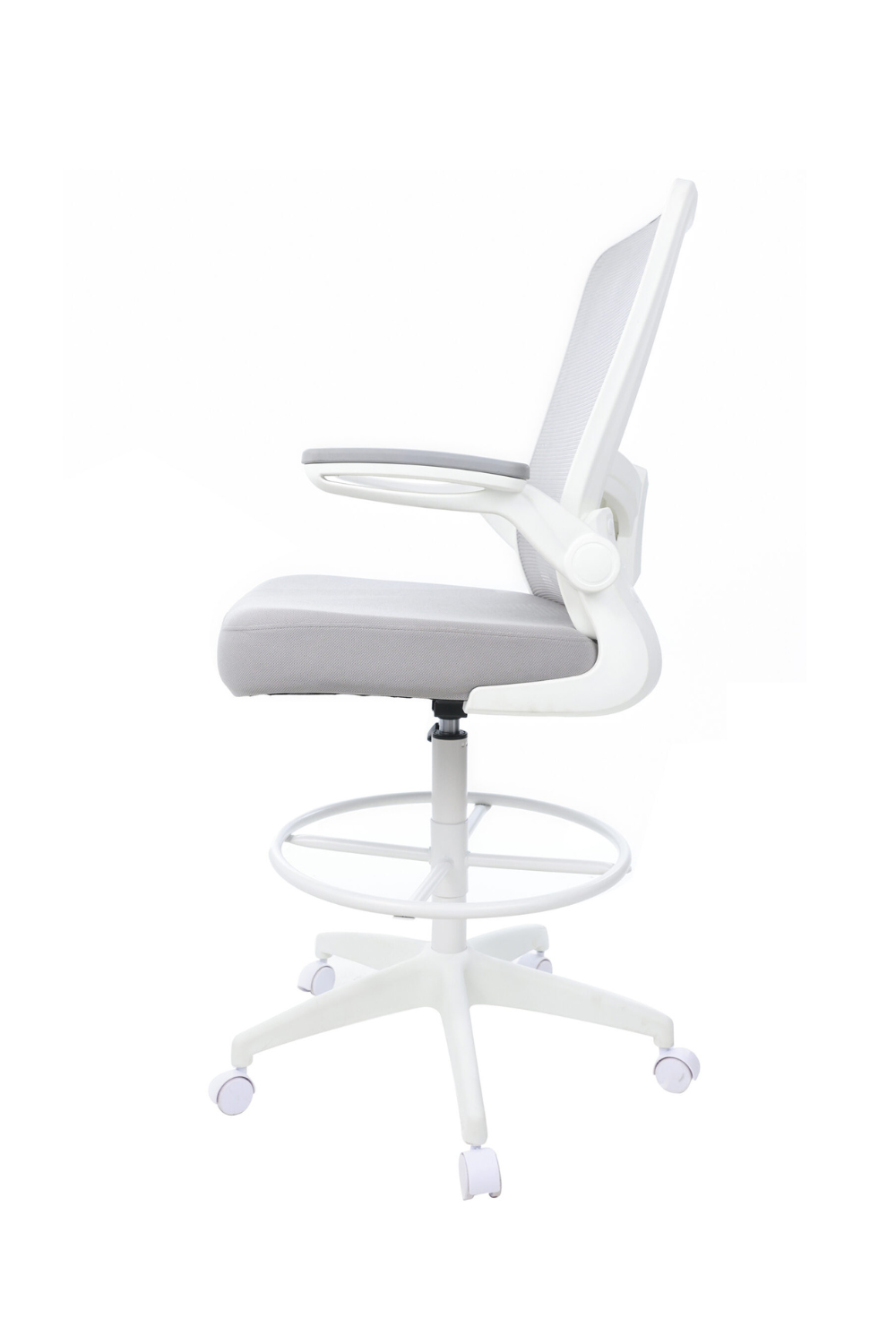 Boss Grey Mesh, Flip Arm, Stool, White Frame (B16366WT-GY)